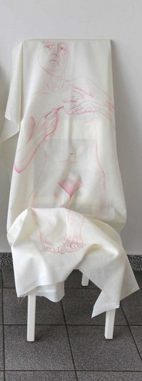 felt-tip pen and acrylic on raw cotton