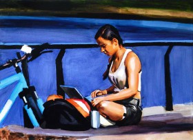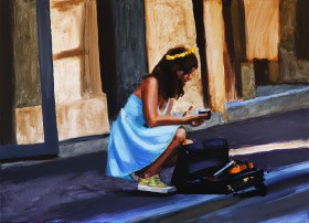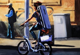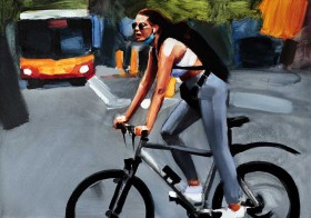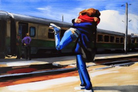 He is interested in the city and its inhabitants. Banal Warsaw scenes t.i.e. bus stop, street, subway, blocks of flats are transformed into a frame that gives an existential character to the simple characters in his paintings. He recorded his artistic debut at the turn of the century in 1998-2001. Nevertheless, he abandons the journalistic nature of his work, typical of his peers, and paints stop-frames of ordinary urban observations. In his painting he refers to the work of Andrzej Wróblewski, Jaroslaw Modzelewski, Edward Hopper, among others. In 2004, he founded the Urban Group, which deals with artistic commentary on city life. Since 2014, he has expanded the spectrum of interests and created an art group, Brotherhood of St. Francis, in which he seeks spiritual messages in his own experiences, observations of the world and nature. Together with invited artists, painters, people of the pen, she runs a kind of mystical reportage from the present day on the Brotherhood's blog, in which, following the medieval model, image and word intermingle in the majesty of God. In Him he seeks inspiration.