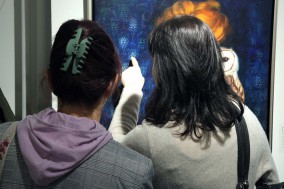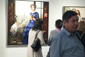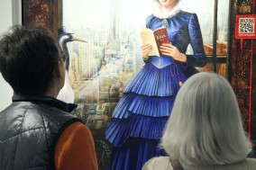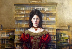 own technique: fabric, thread, oil, schagmetal on canvas