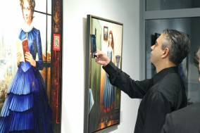 own technique: fabric, oil, schagmetal on canvas