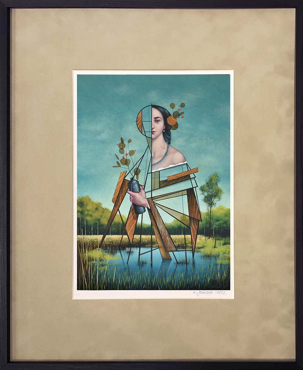 The artwork can be additionally framed; a sample frame is shown in the following photos.