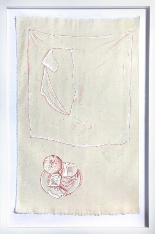 felt-tip pen and acrylic on raw cotton