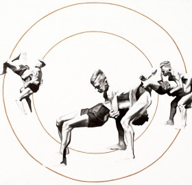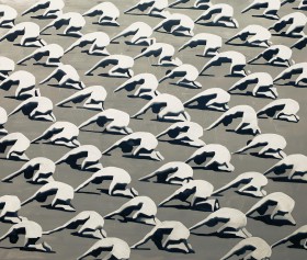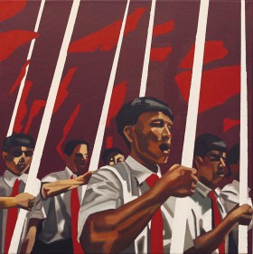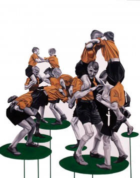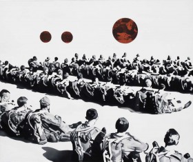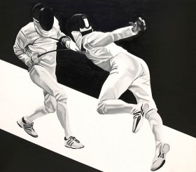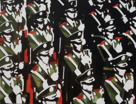 "Erwin’s works can be sorted into those that were created with the help of color and those that exist with the help of black and white. However, the main inspiration for all his paintings is the man in a group that has been arranged, disciplined, subjected to certain rigors. The author seems to see the crowd as mosaic, sometimes arranged in abstract representations'.