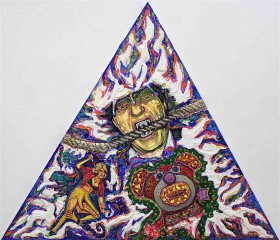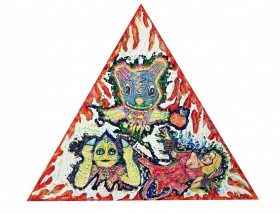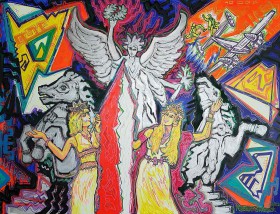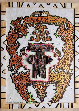 acrylic, canvas, oil pen, acrylic pastel, glitter