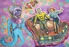 Splashing in the sea, we see a squirrel and lovers, a Predator with an alien, 2016
