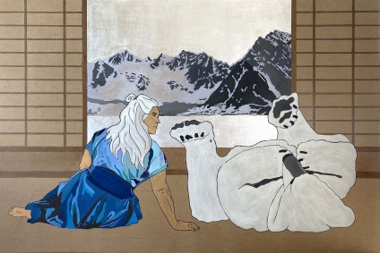 The artist, fascinated by the Far East since childhood, combines the tradition of Western oil painting with the themes, symbolism and formal and material solutions of Eastern art. The exhibition will feature works from the series "Charmed by Japan", which has been in development for 15 years, as well as this year's newest series, "Queen and Bear"; telling the story of the friendship of the pair of title characters. The project is a breakthrough for the artist, as it is the first time she chooses to put herself in paintings and tell the story of very personal experiences, fantasies and inner journeys.