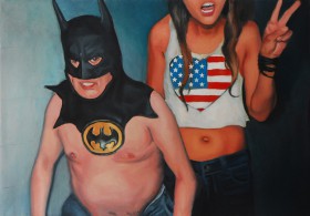 flamaster i akryl na surówce bawełnianej, technika własna, instalacja