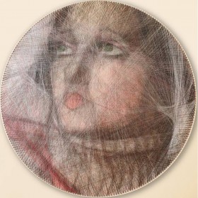 Stringart inspirowany dziełem "Autoportret w zielonym Bugatti" Tamary Łempickiej, 2021