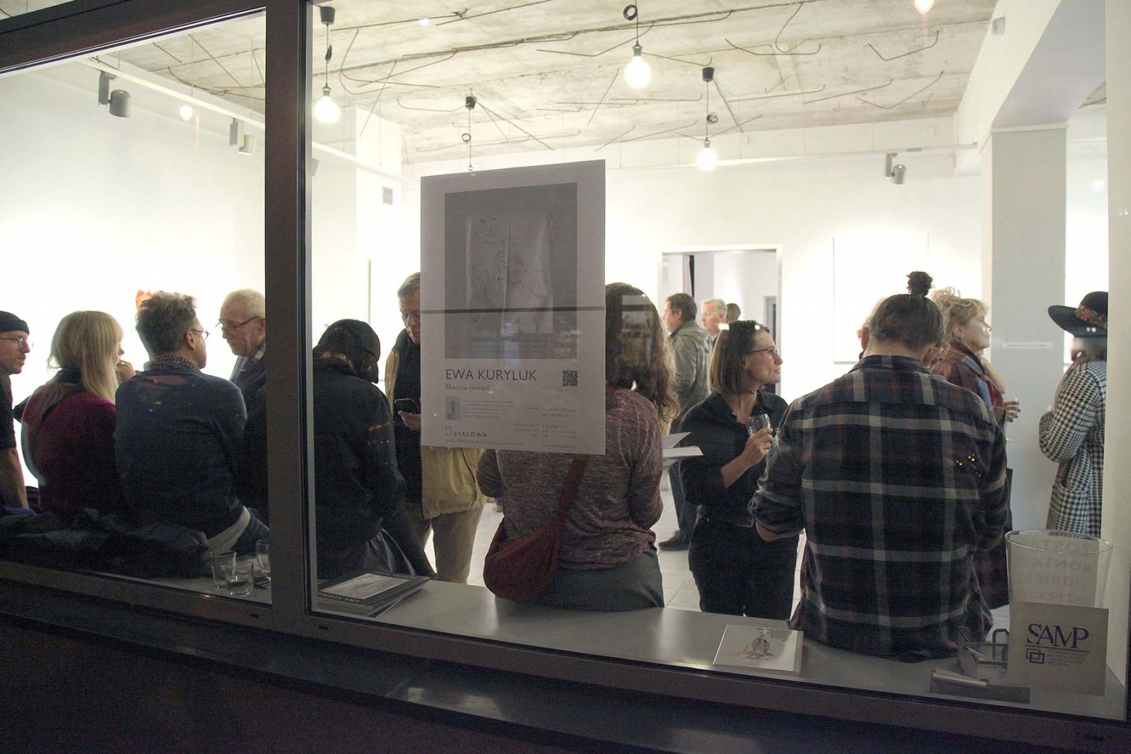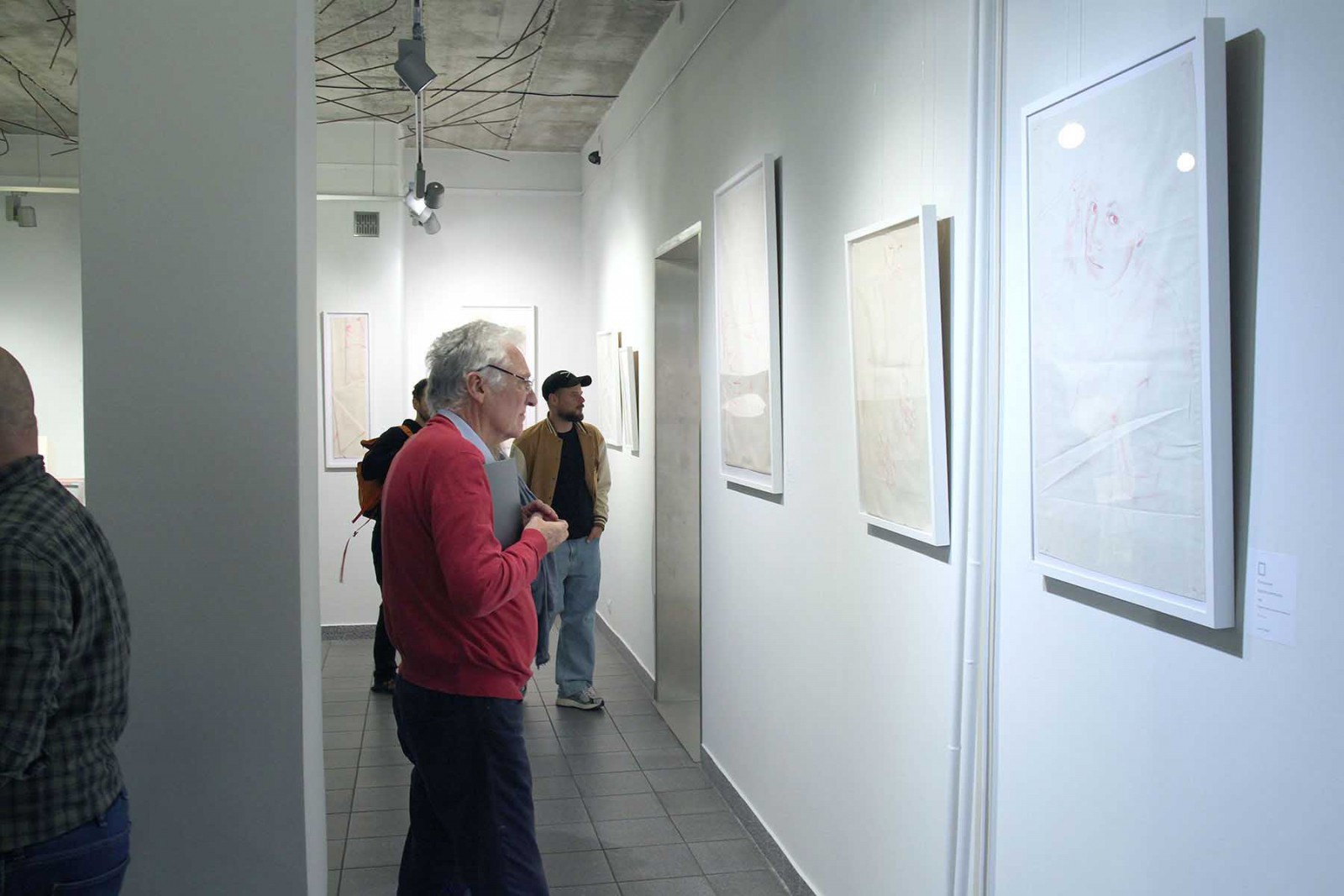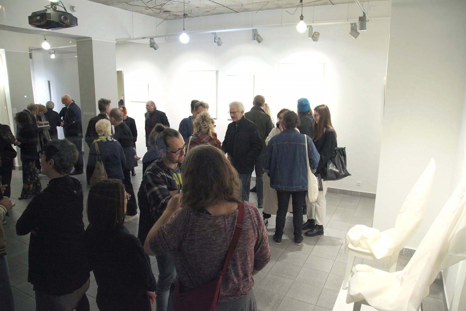 flamaster i akryl na surówce bawełnianej, technika własna, instalacja
