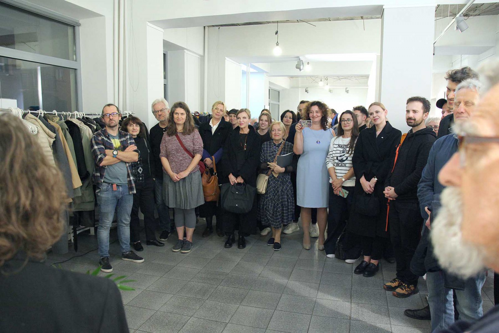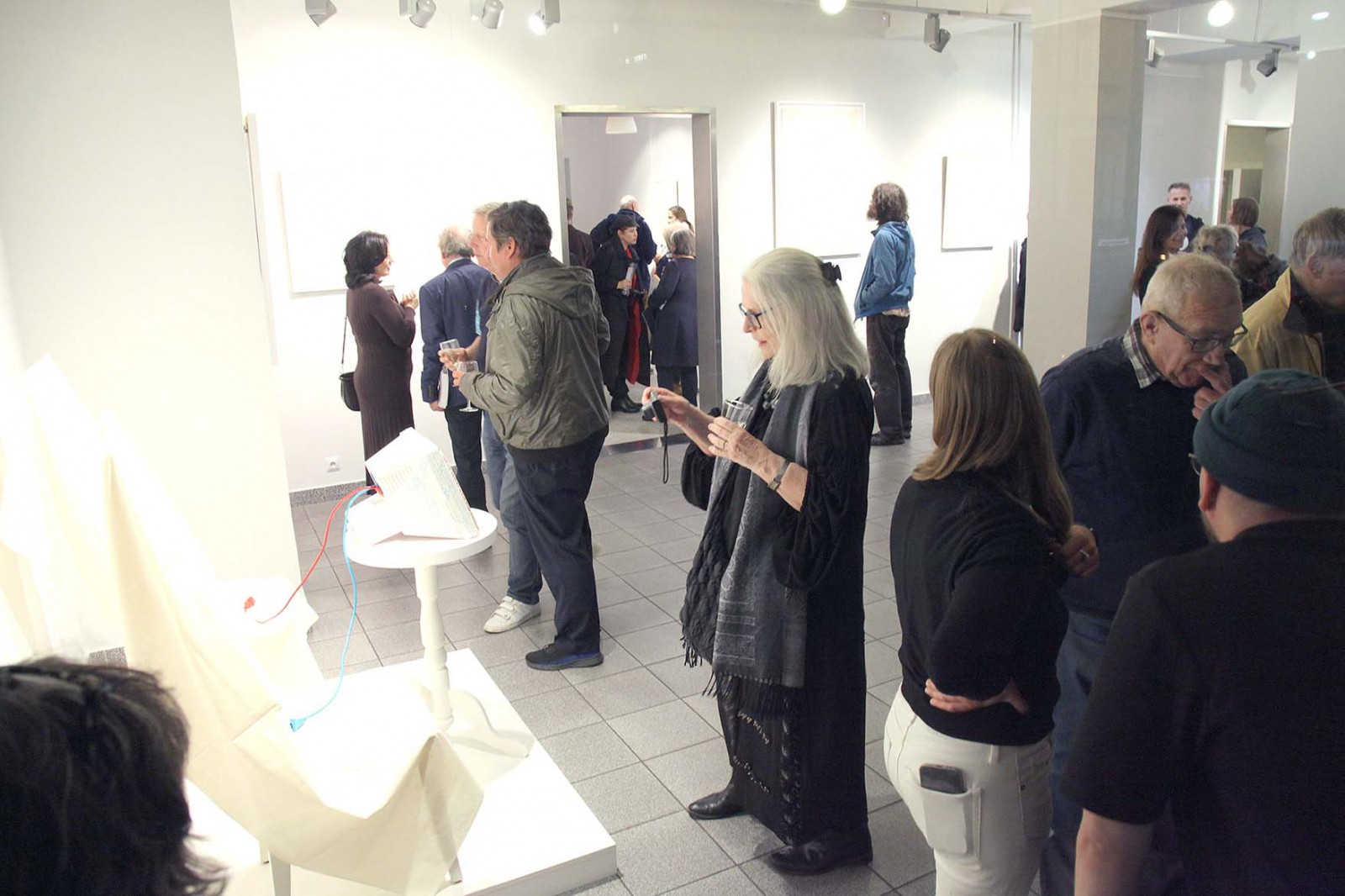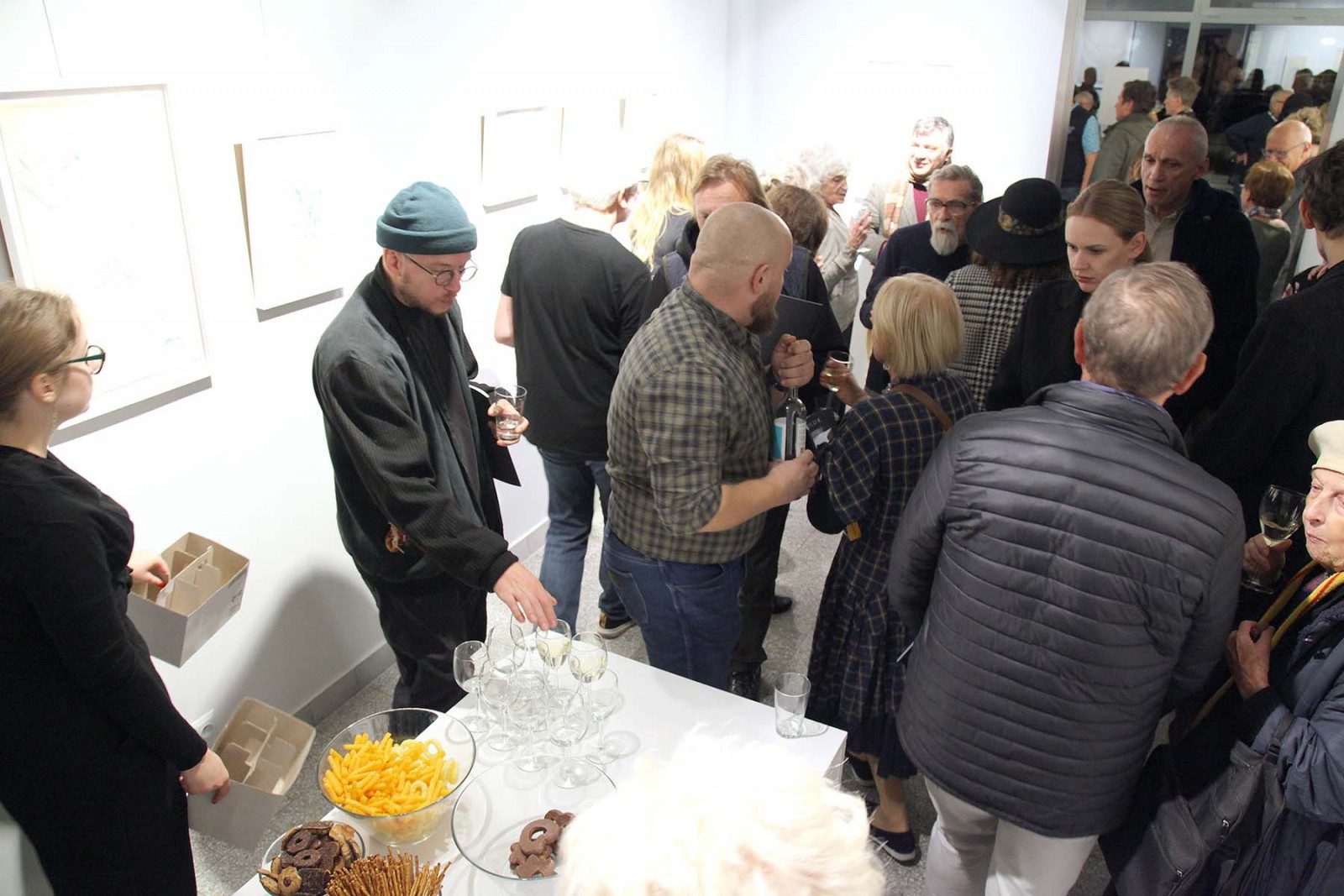 flamaster i akryl na surówce bawełnianej, technika własna, instalacja