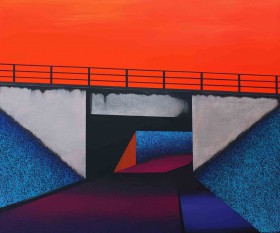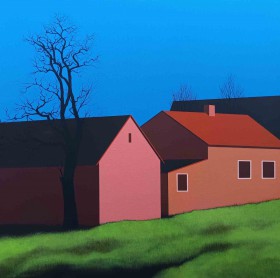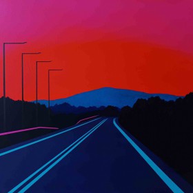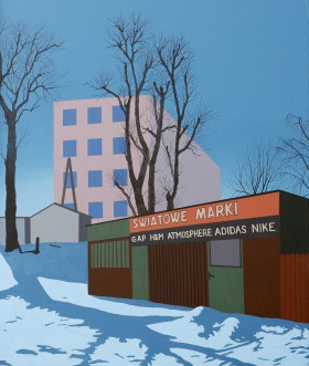 flamaster i akryl na surówce bawełnianej, technika własna, instalacja