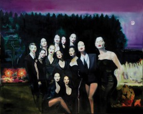 flamaster i akryl na surówce bawełnianej, technika własna, instalacja