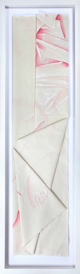 flamaster i akryl na surówce bawełnianej, technika własna, instalacja