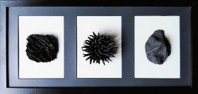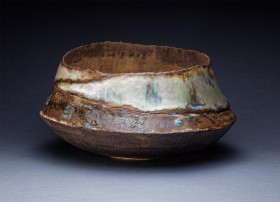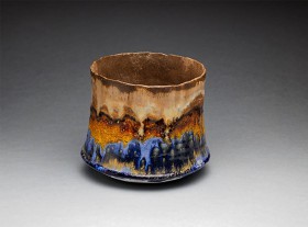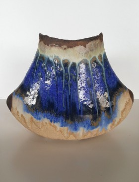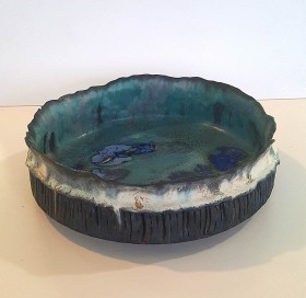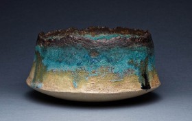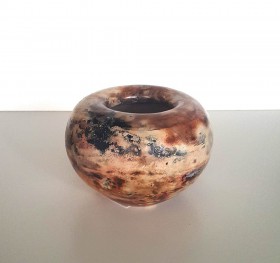 kamionka toczona na kole, wypalana w technice saggar, zdobiona związkami metali i materiałem organicznym