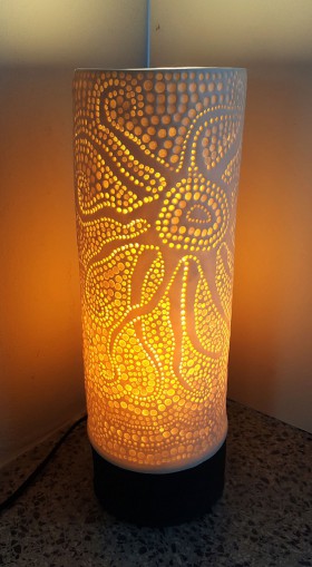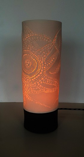 lampa stołowa, biała nieszkliwiona porcelana z ręcznie wytłaczanym wzorem, wypalana w temp.1230 C
