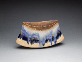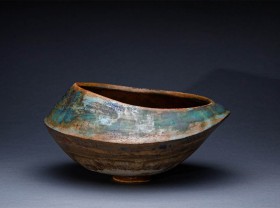 kamionka toczona na kole, barwiona angobami i szkliwem, wypalana w temp. 1245 C.