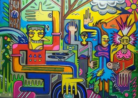 technika mieszana - olej, akryl, spray, farby luminescencyjne, płótno