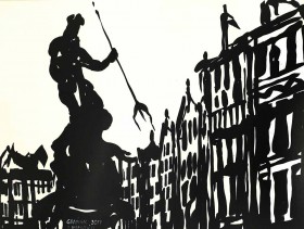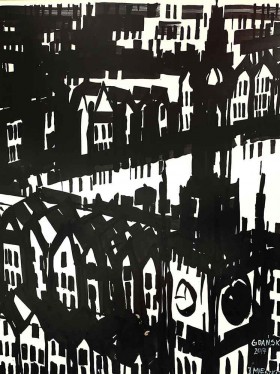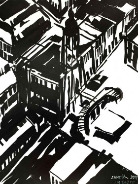 atrament, grafit akwarelowy, kawa brazylijska, złoto mineralne, papier wielowarstwowy