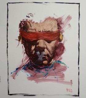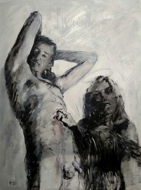 technika mieszana - olej, spray, akryl, piasek, farba do szkła, spray, płótno