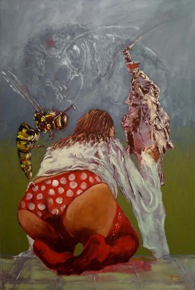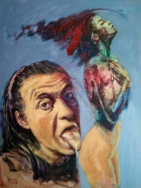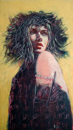 technika mieszana - olej, akryl, spray, brokat, farby do szkła, płótno
