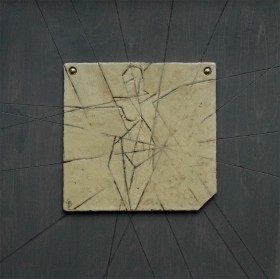 ceramika szkliwiona i wypalana w piecu elektrycznym, płyta drewniana (przypalana i patynowana), gwoździe niklowane