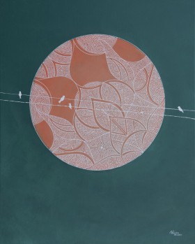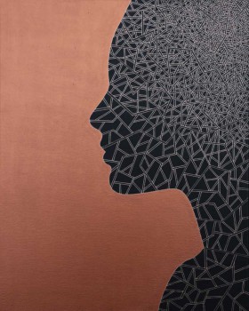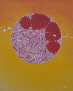 akryl, długopis żelowy, płótno, poliptyk (7 elementów)