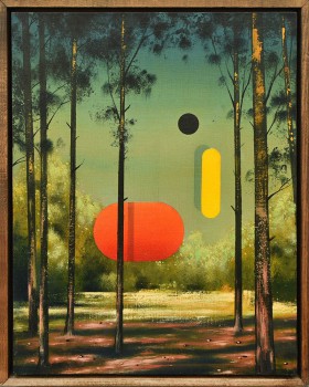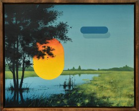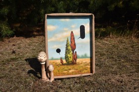 sklejka, gwoździe, obraz z kolorowych nici (bez użycia farb)
