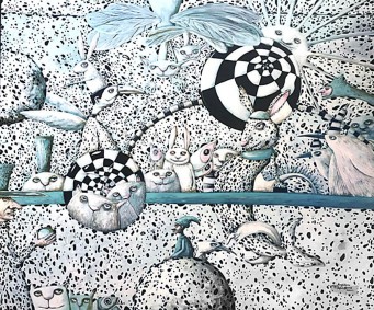 Artystka, od dzieciństwa zafascynowana Dalekim Wschodem, łączy tradycję olejnego malarstwa zachodniego z tematyką, symboliką i formalnymi oraz materiałowymi rozwiązaniami sztuki wschodu. Na wystawie pokazane będą zarówno prace z rozwijanego od 15 lat cyklu „Japonią Oczarowana" jak i najnowsza, tegoroczna seria „Królowa i Niedźwiedź"; opowiadająca historię znajomości pary tytułowych bohaterów. Projekt jest przełomowy dla artystki, gdyż pierwszy raz decyduje się umieścić na obrazach siebie i opowiedzieć o bardzo osobistych doświadczeniach, fantazjach i podróżach wewnętrznych.