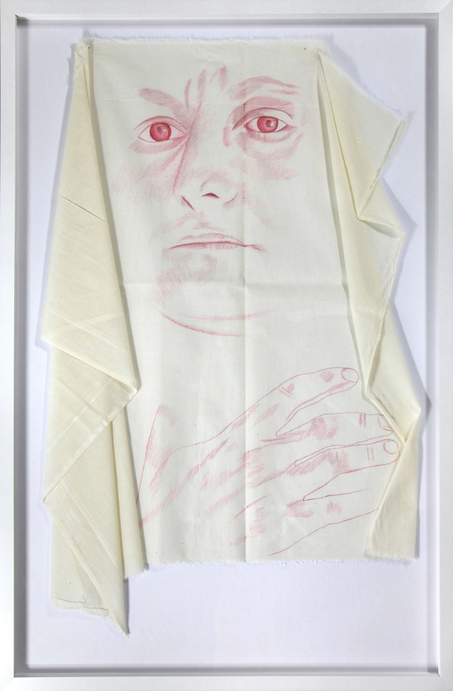 flamaster i akryl na surówce bawełnianej, technika własna, instalacja