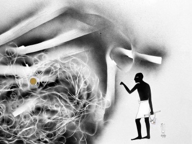 Obraz inspirowany fragmentem utworu Jalaluddina Rumi: „Zatem zostały ci dane dwa skrzydła - lęku i nadziei, abyś mógł się wznieść; ptak z jednym skrzydłem nie może latać". Kompozycja zawiera dwa arabskie słowa zapisane w stylu thuluth: